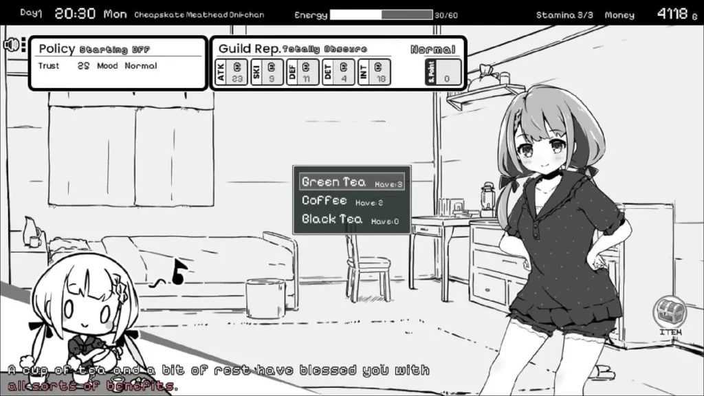 Living With Sister Monochrome Fantasy gameplay thrives on replay, so if you do game over, New Game+ bonuses help you catch up. I carried over gold and stats, making my next run a breeze. Focus on how to win guild battles by learning enemy patterns and conserving Energy for healing moves. With these energy management tips, you’ll keep both your guild and sister happy, unlocking the rich bonds this game offers. 🌟